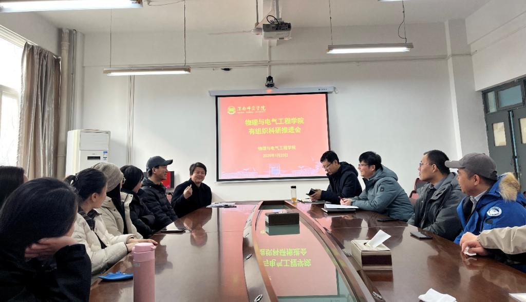 为深入贯彻落实学校关于加强科研统筹布局和提升科技创新能力的工作部署,进一步推进学院有组织科研工作走深走实,1月23日上午,物理与电气工程学院召开有组织科研推进会。学院领导班子成员及新进博士教师参加会议。会议由副院长何冰主持。